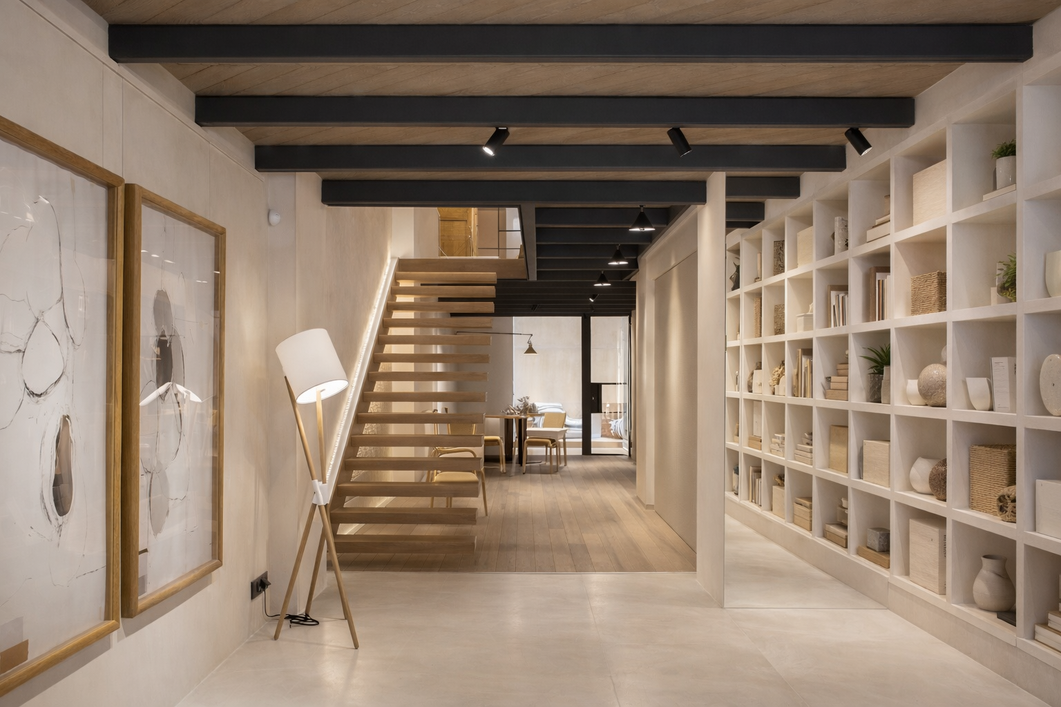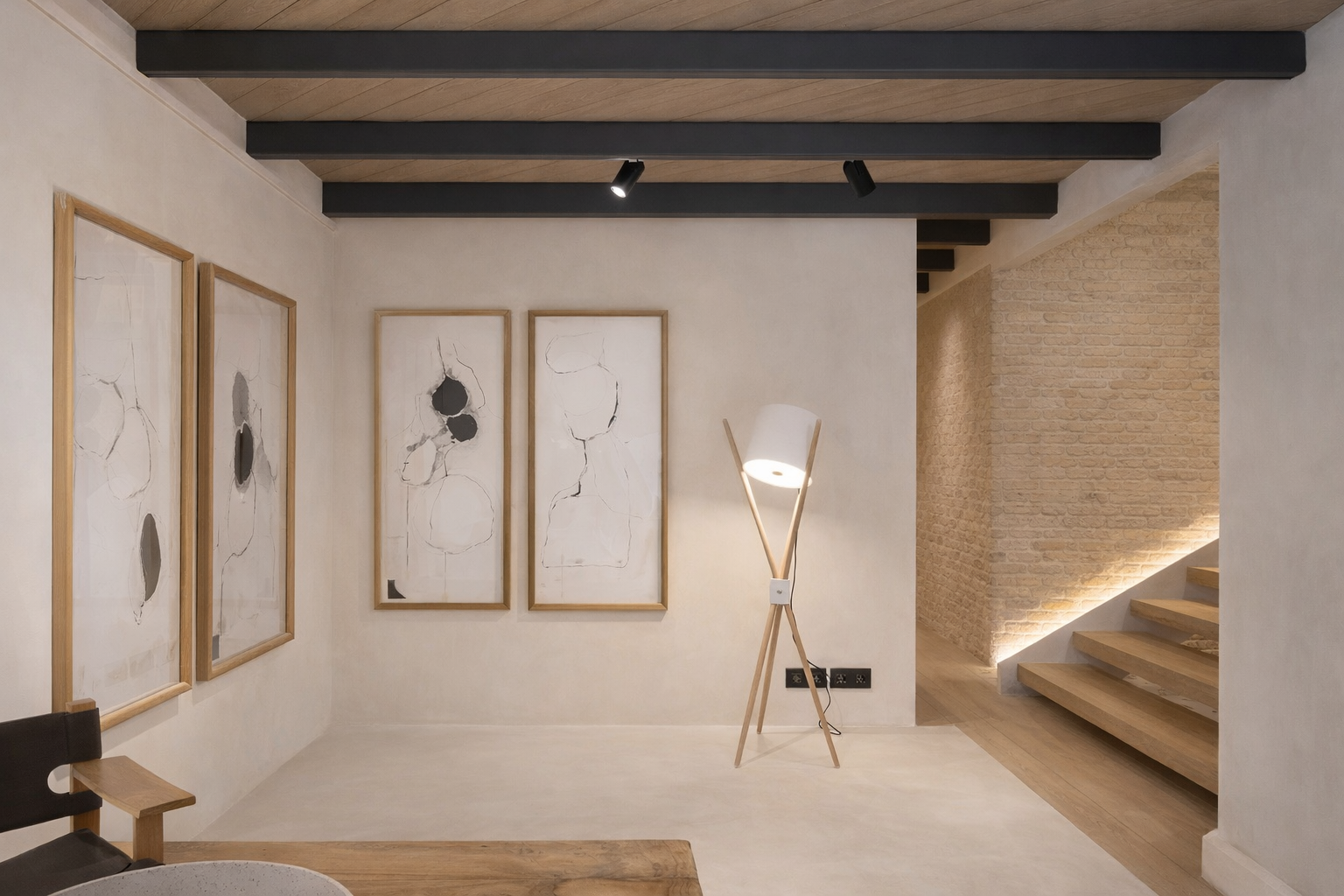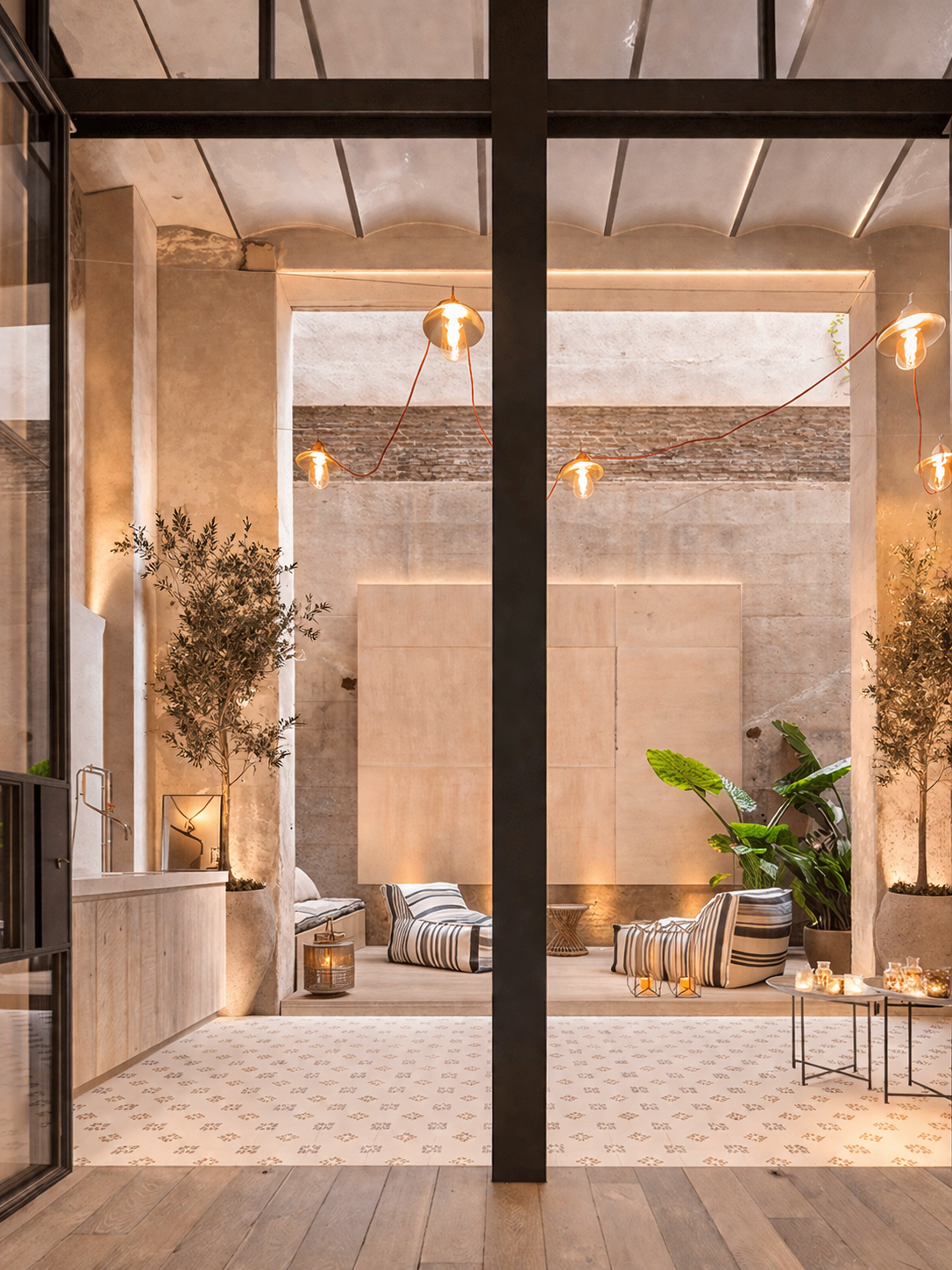 El proyecto combina estética mediterránea contemporánea, esencia industrial y minimalismo cálido, con materiales nobles y una iluminación muy cuidada.