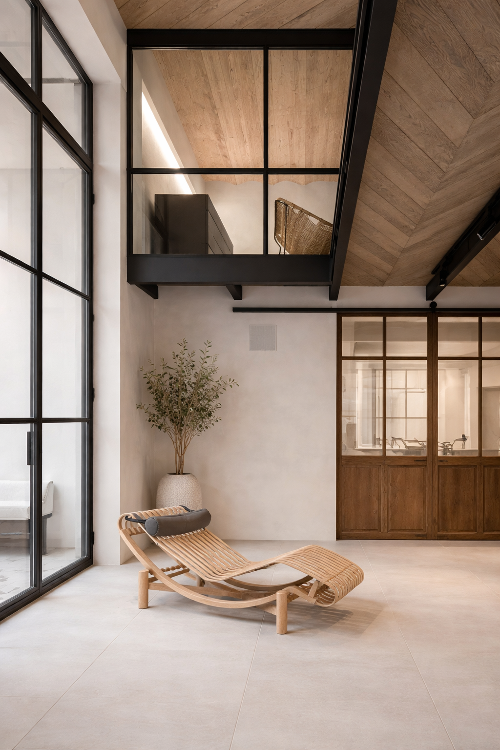 Desde el punto de vista arquitectónico y decorativo, el proyecto se apoya en una combinación de estilo mediterráneo contemporáneo, esencia industrial recuperada y diseño interior minimalista cálido. Esta mezcla permite crear un ambiente diferenciador, elegante y reconocible.